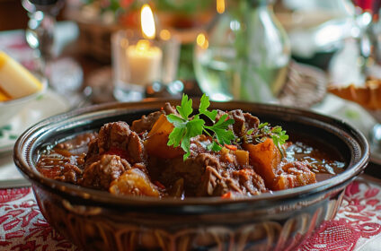 - Ciorbă de burtă, servită cu ardei iute și smântână (25 RON)